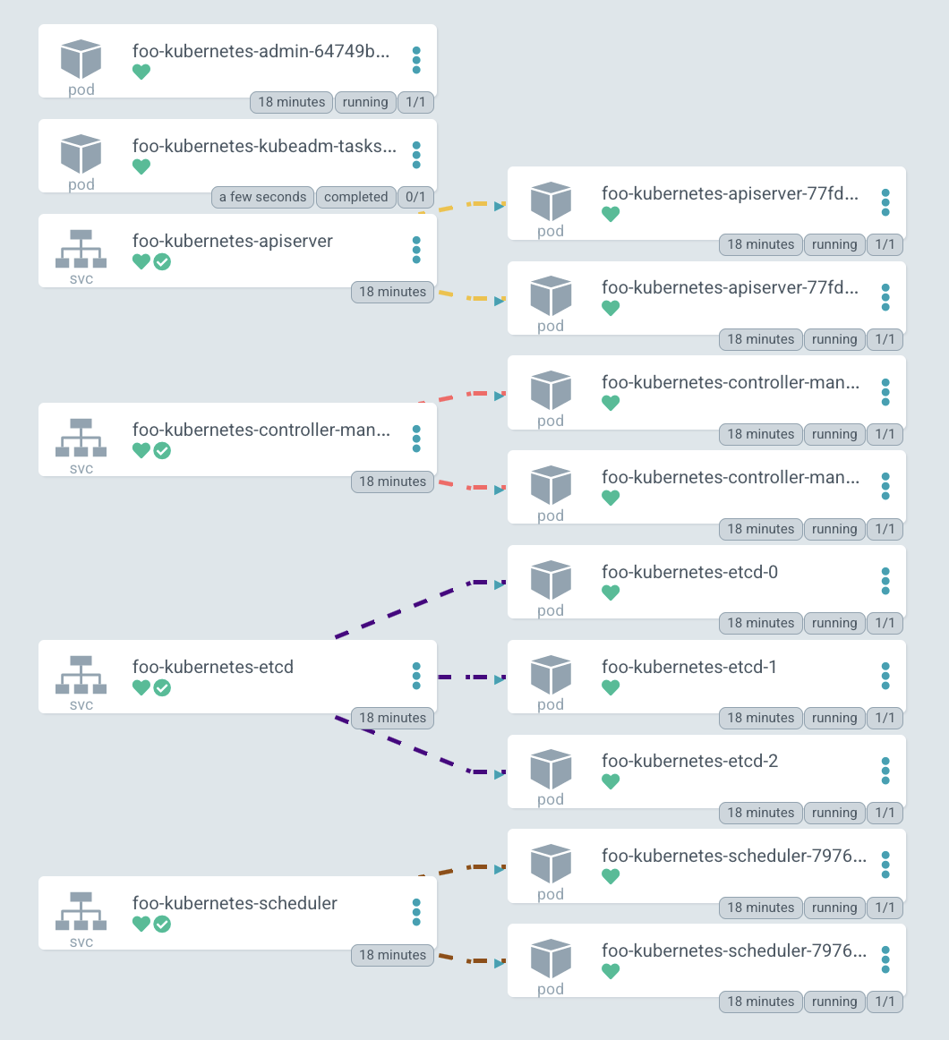 • Single binary, puts lots of pods on each node, and queries each pod to make sure that it is running.